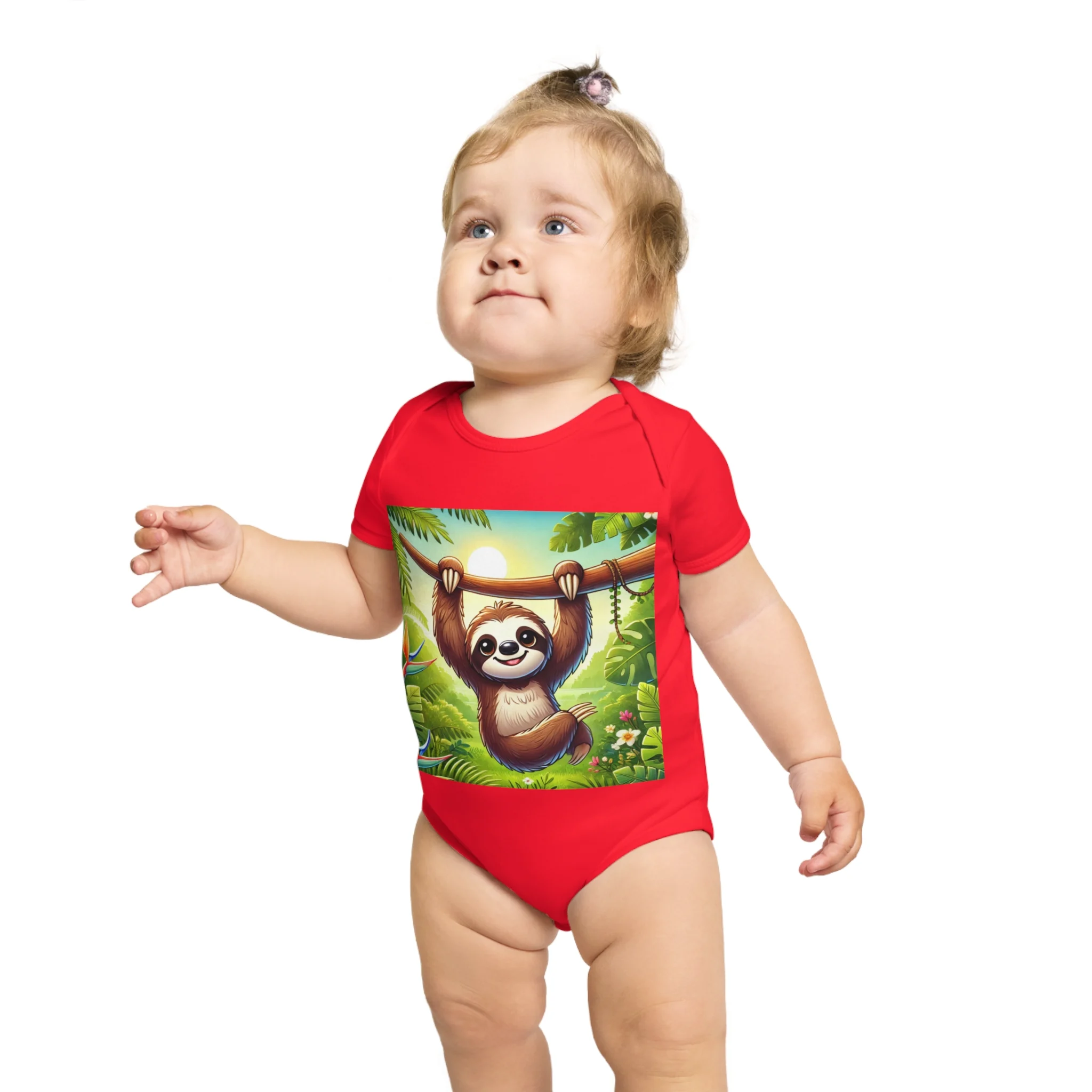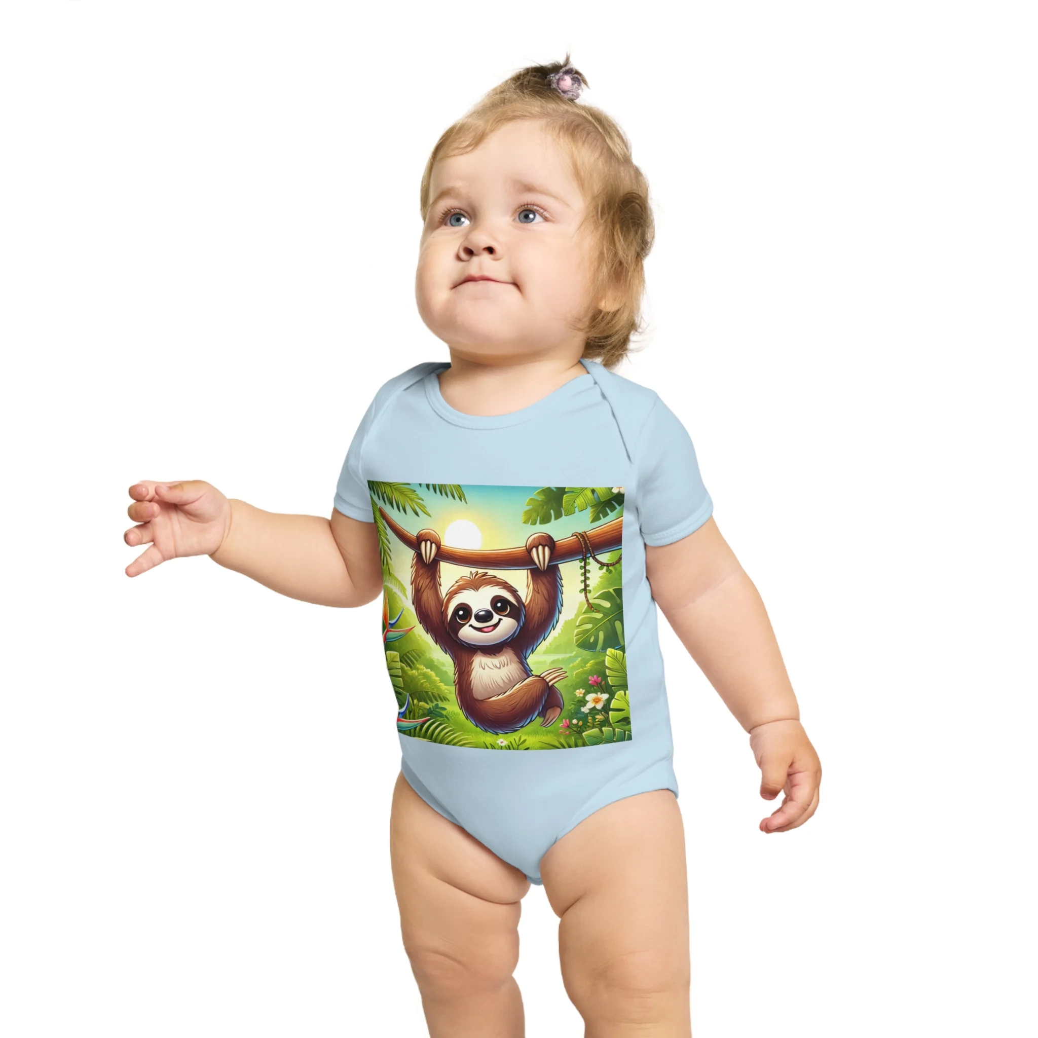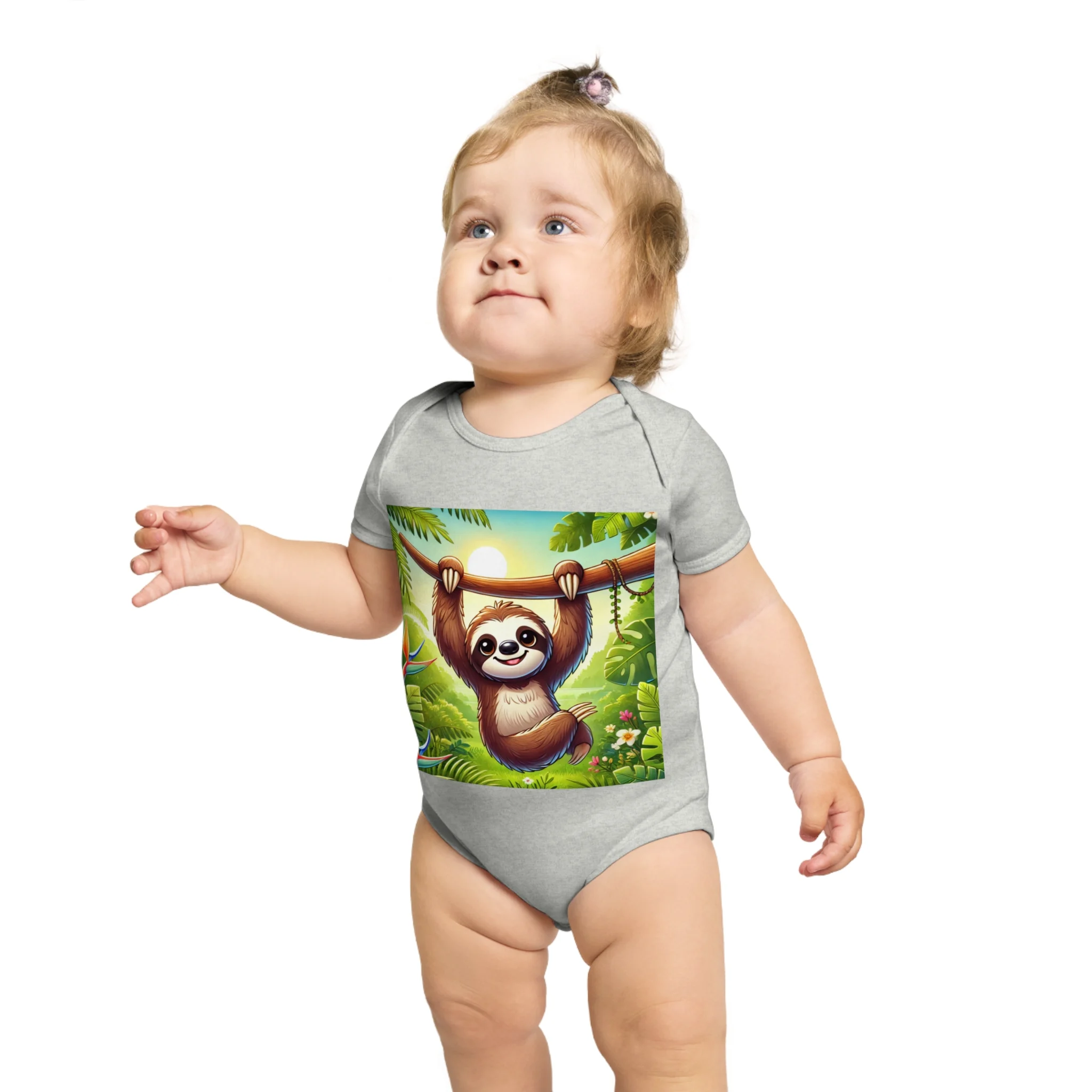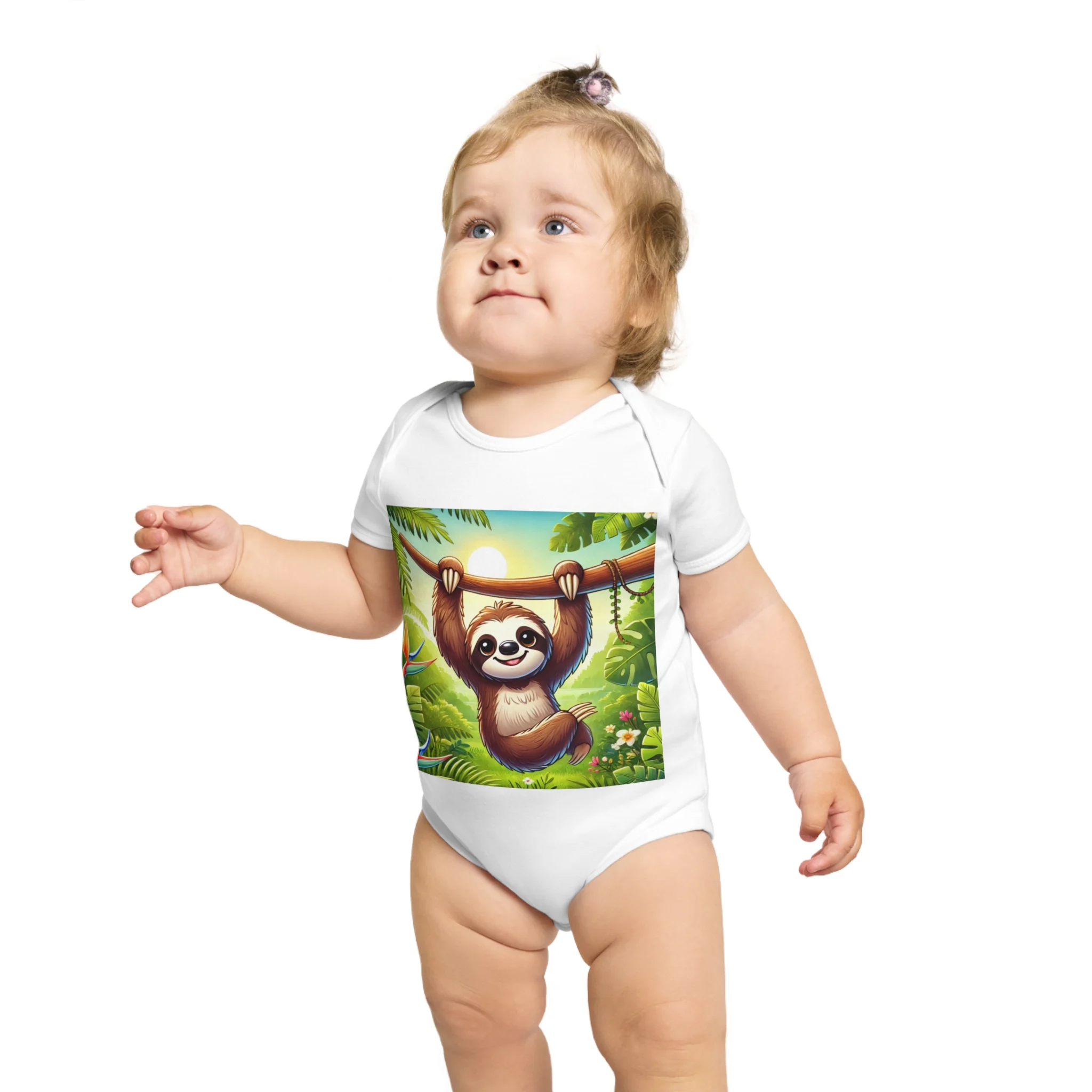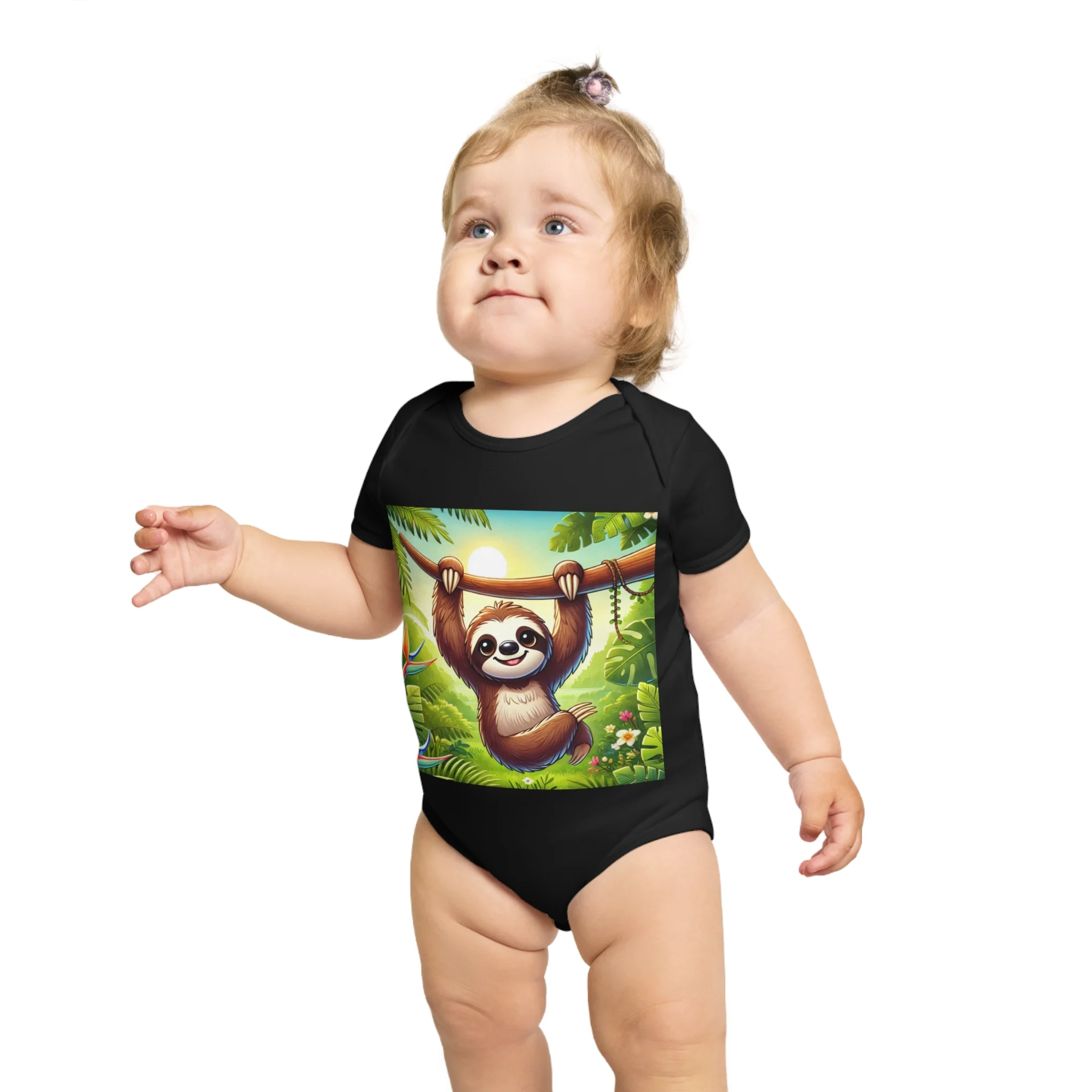 This adorable Baby Bodysuit features a cute sloth design, perfect for little ones to wear and play in. Made from ethically sourced 100% cotton, this bodysuit is soft and comfortable for babies to wear all day long. The sloth design adds a playful touch and is perfect for parents looking for cute and fun outfits for their little one. Great for baby showers, birthdays, and everyday wear.